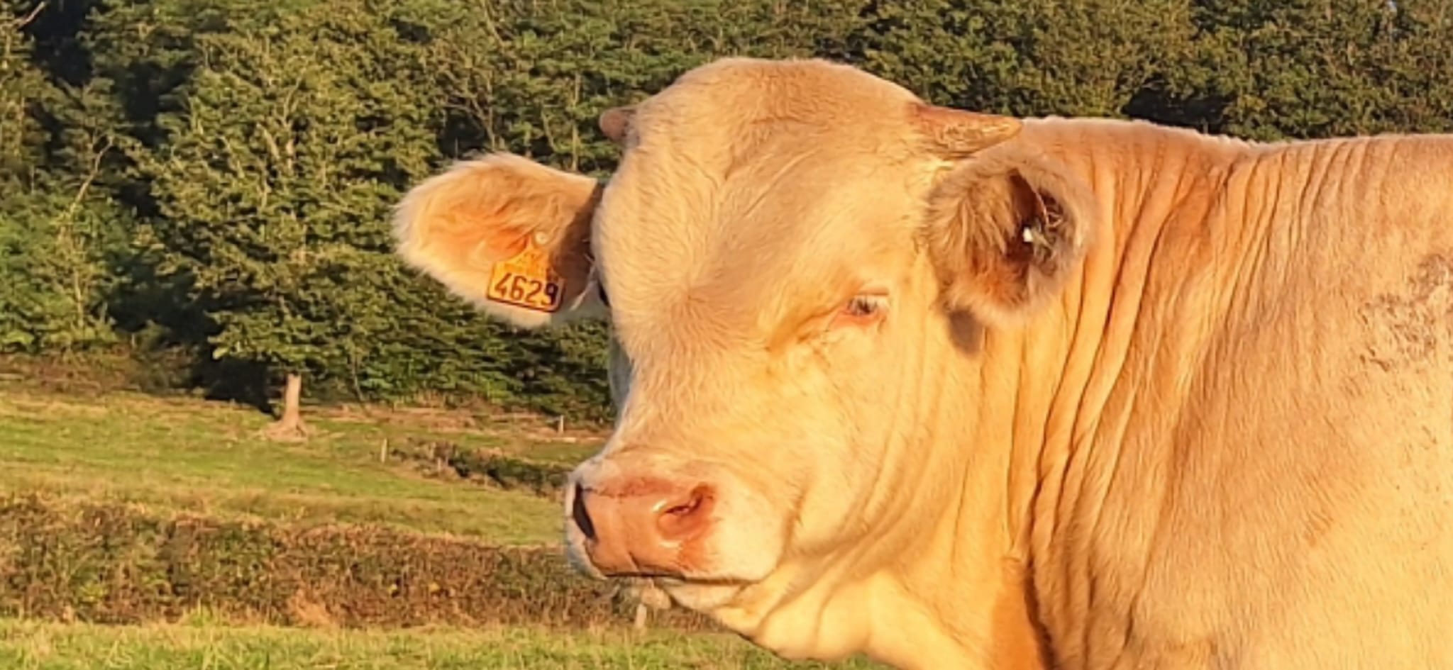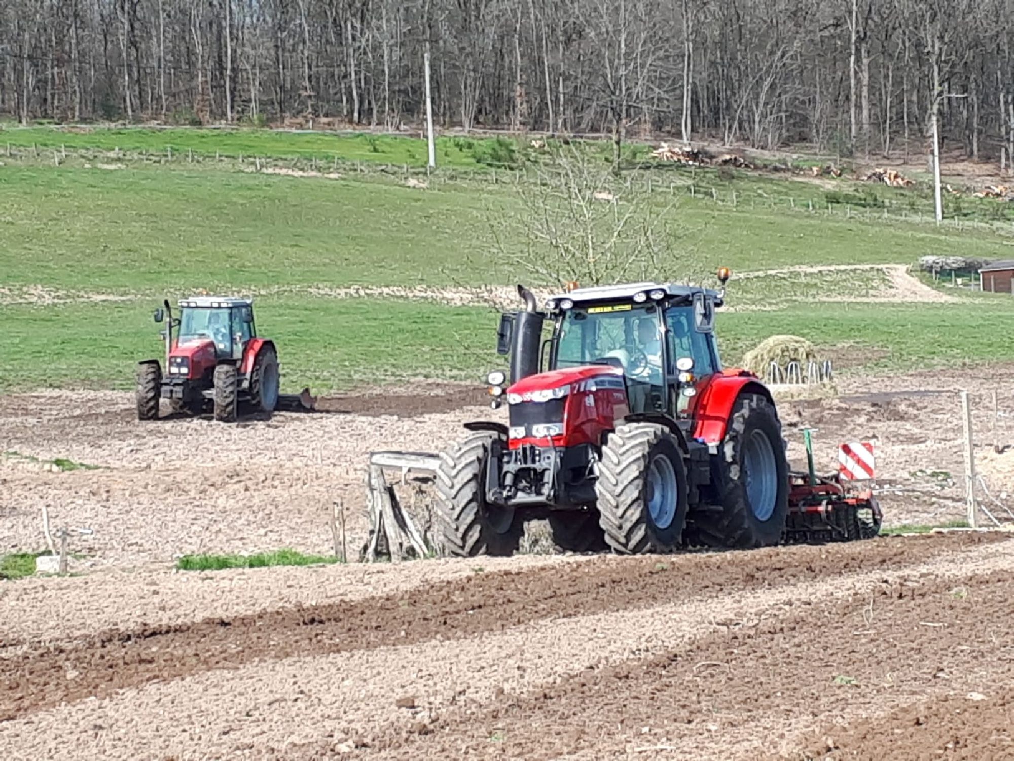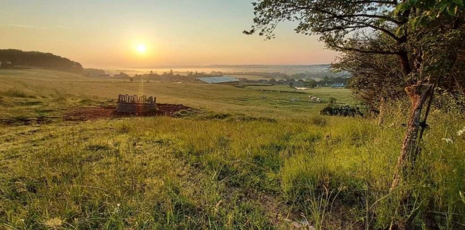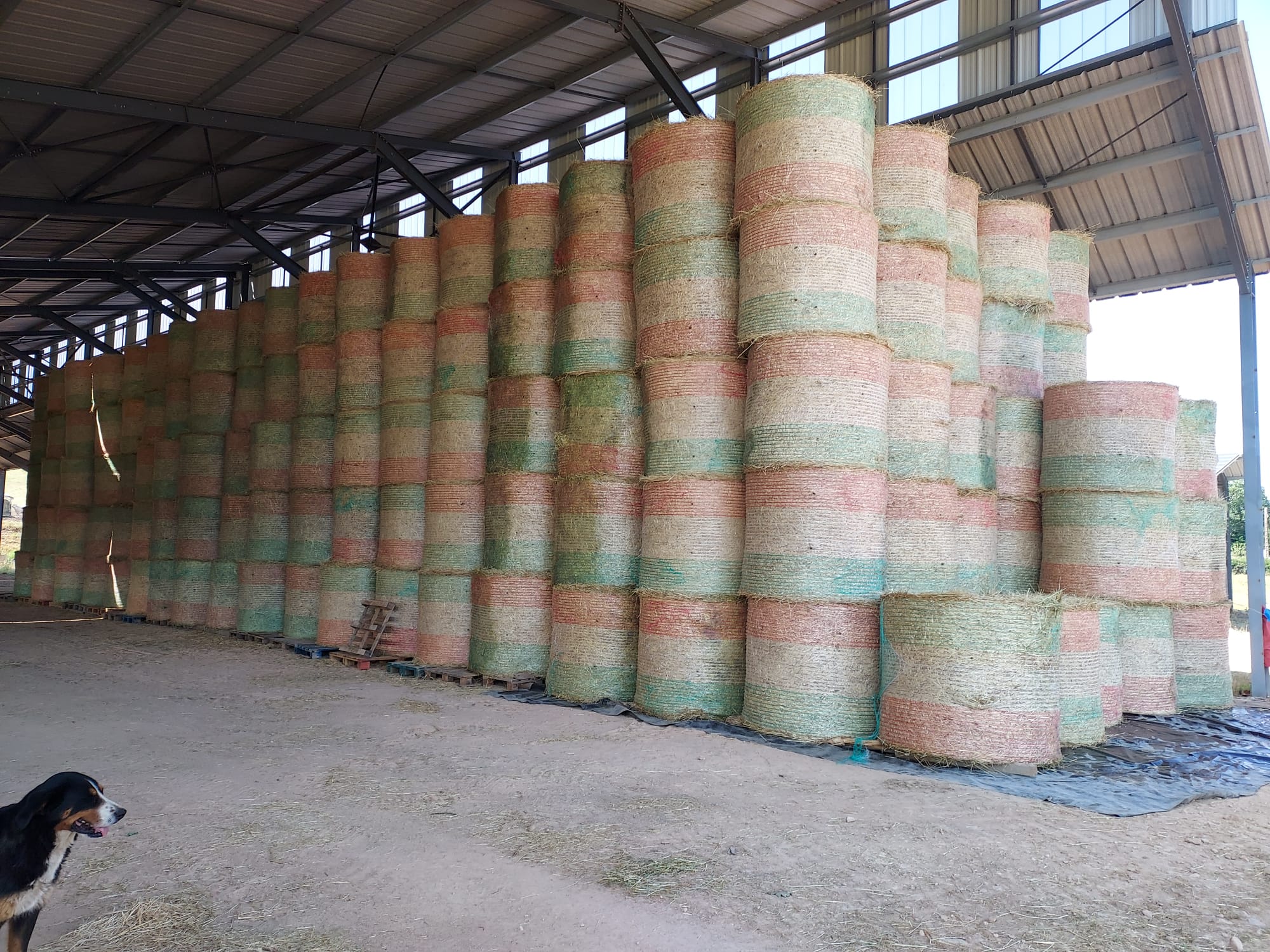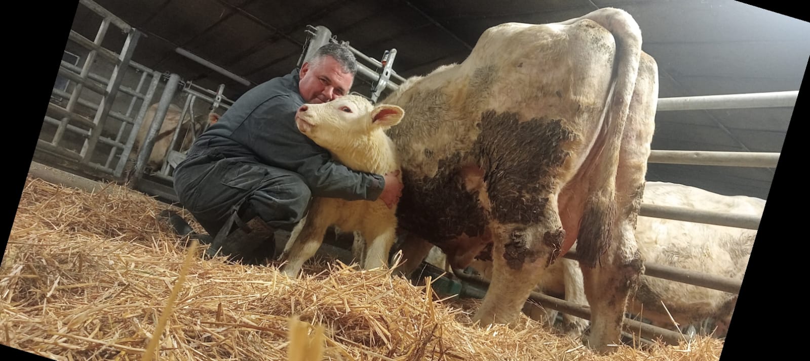La surface de notre exploitation est de 210 hectares où nous cultivons de l'herbe pour nos animaux et environ 25 hectares de céréales (blé, orge, triticale, épeautre, avoine et méteil) pour la complémentation de nos animaux ainsi que la paille pour leur confort hivernal...