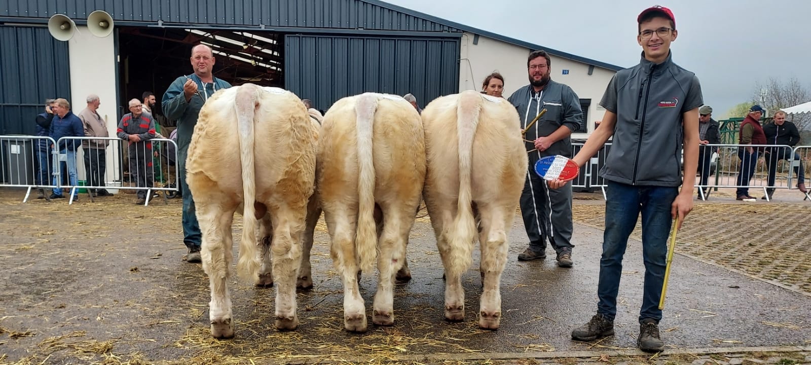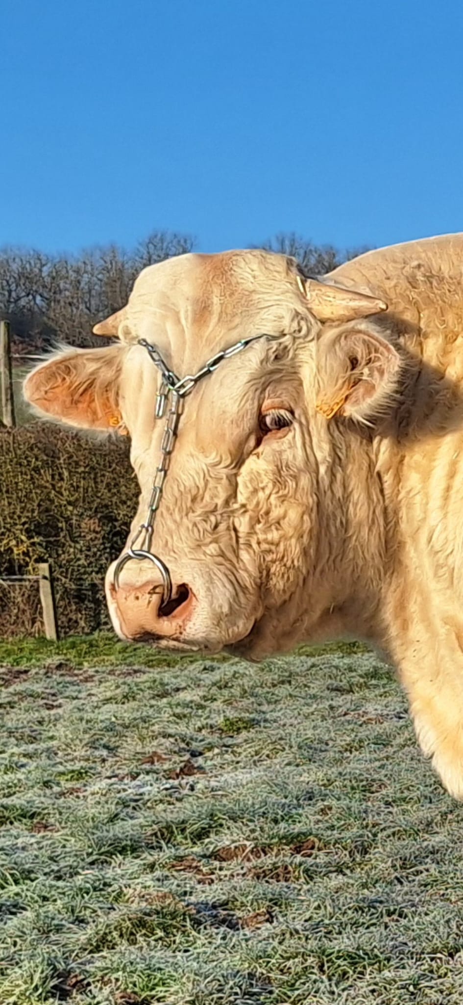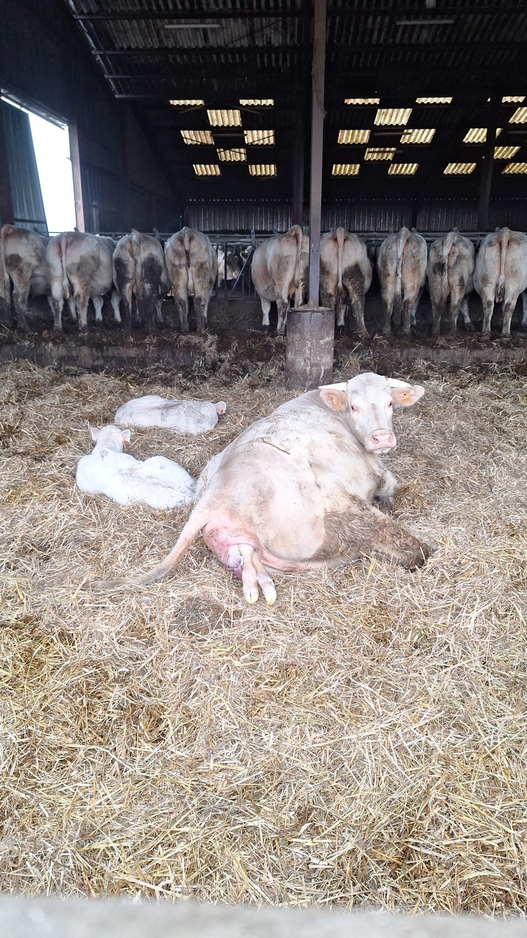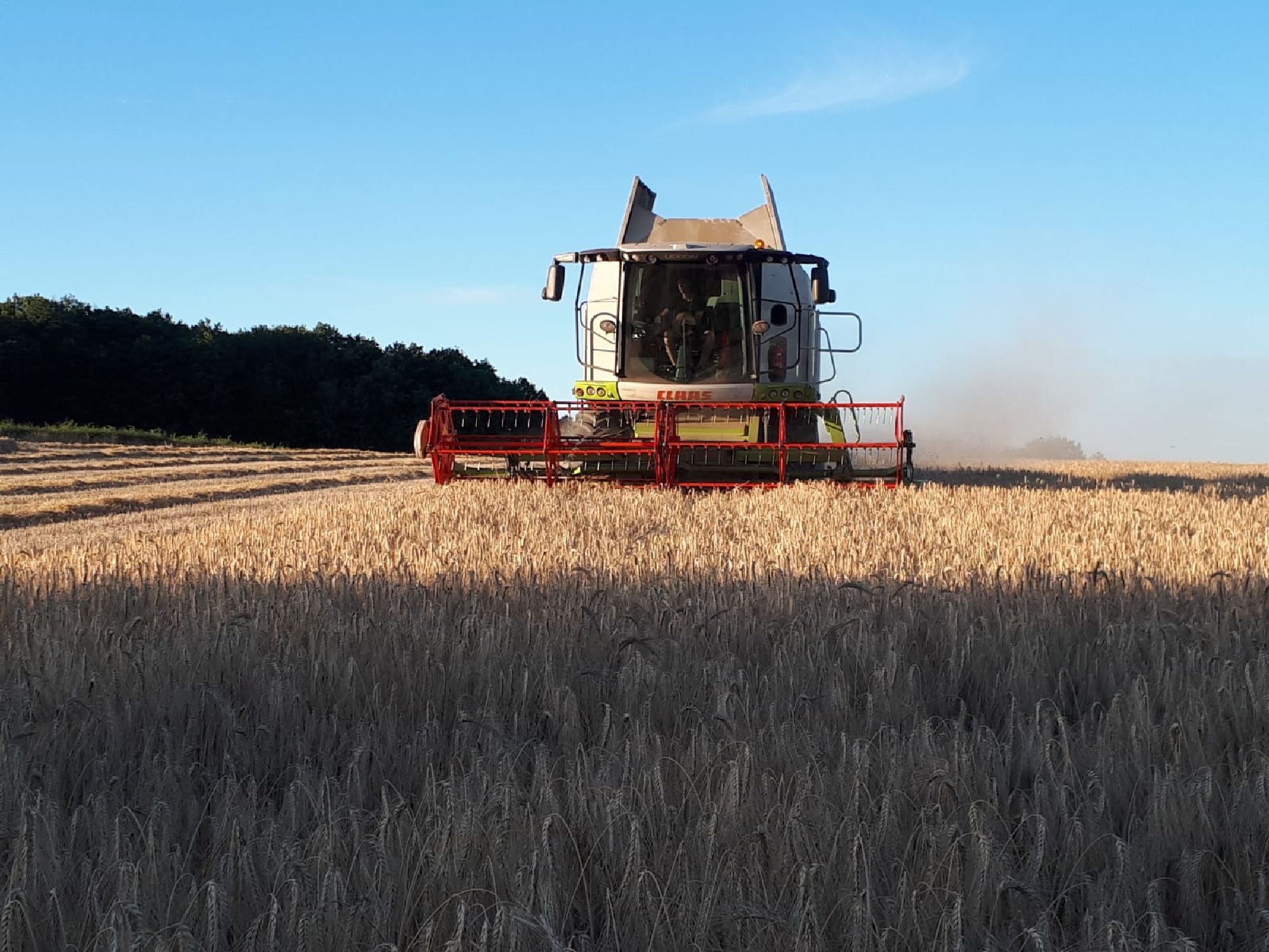 La surface de notre exploitation est de 210 hectares où nous cultivons de l'herbe pour nos animaux et environ 25 hectares de céréales (blé, orge, triticale, épeautre, avoine et méteil) pour la complémentation de nos animaux ainsi que la paille pour leur confort hivernal...