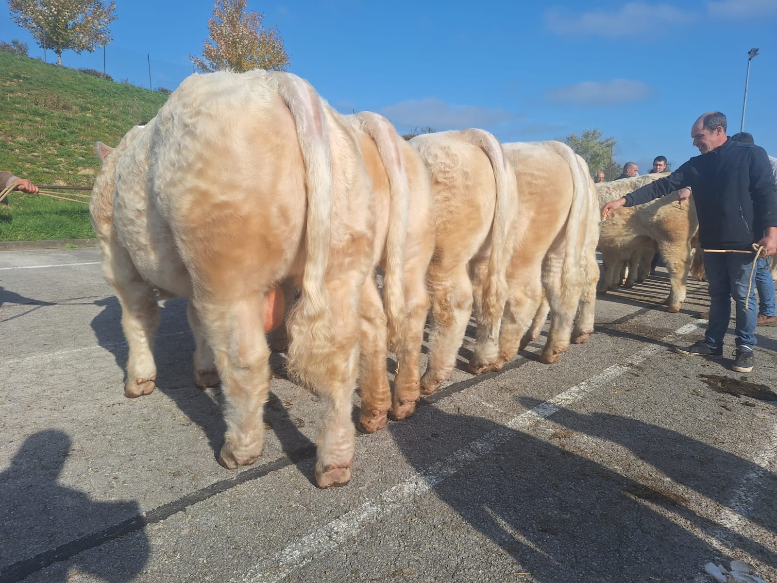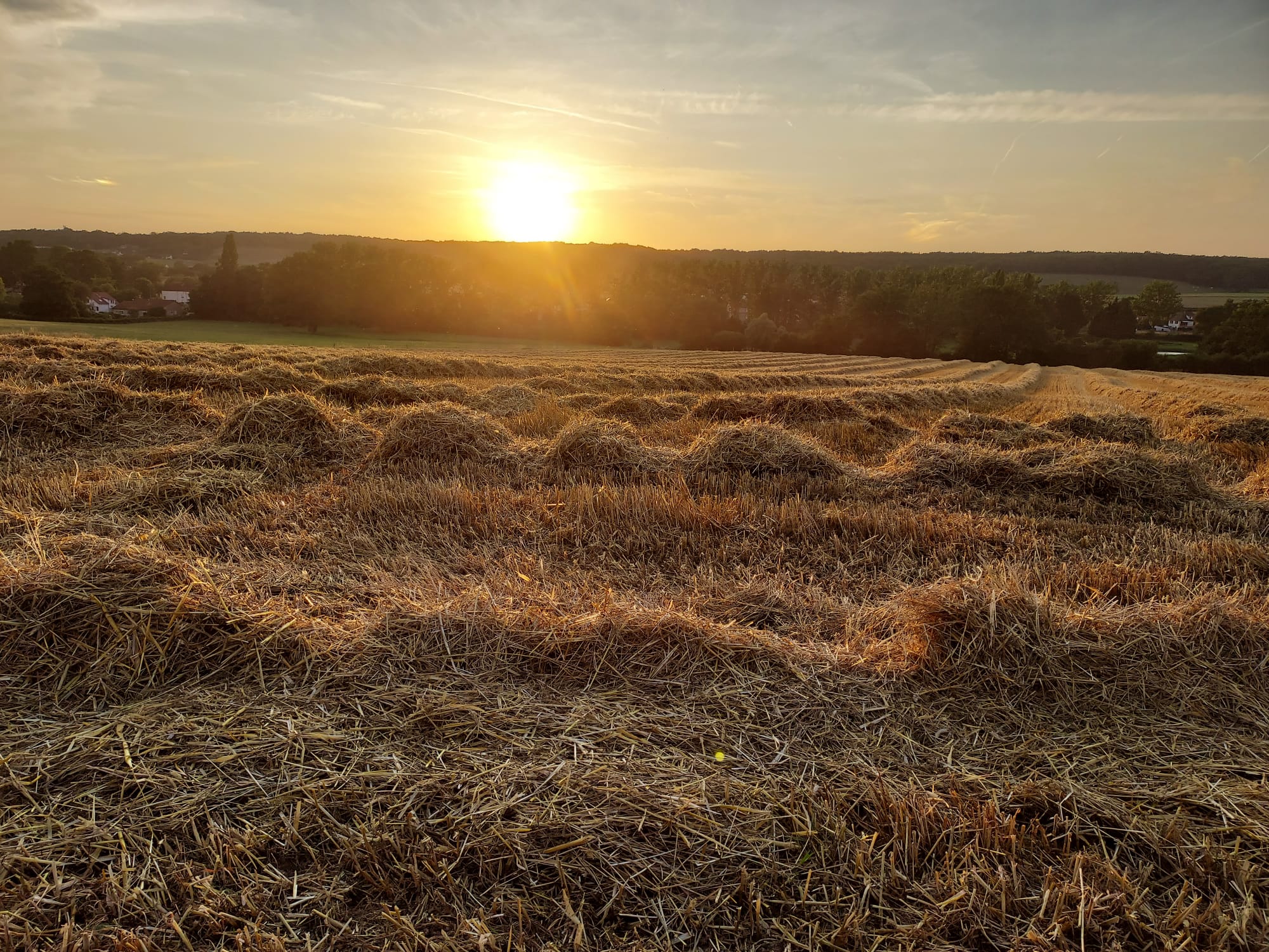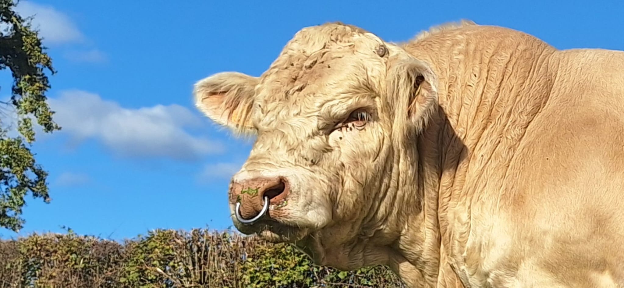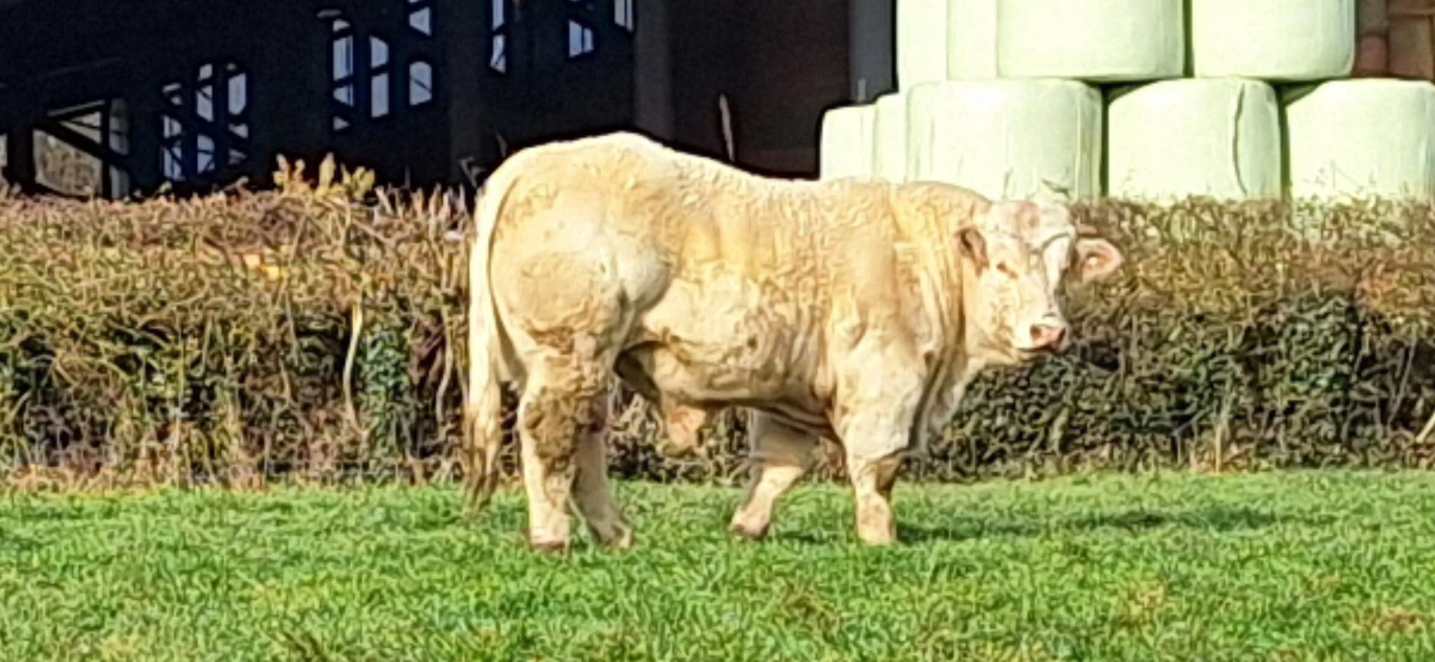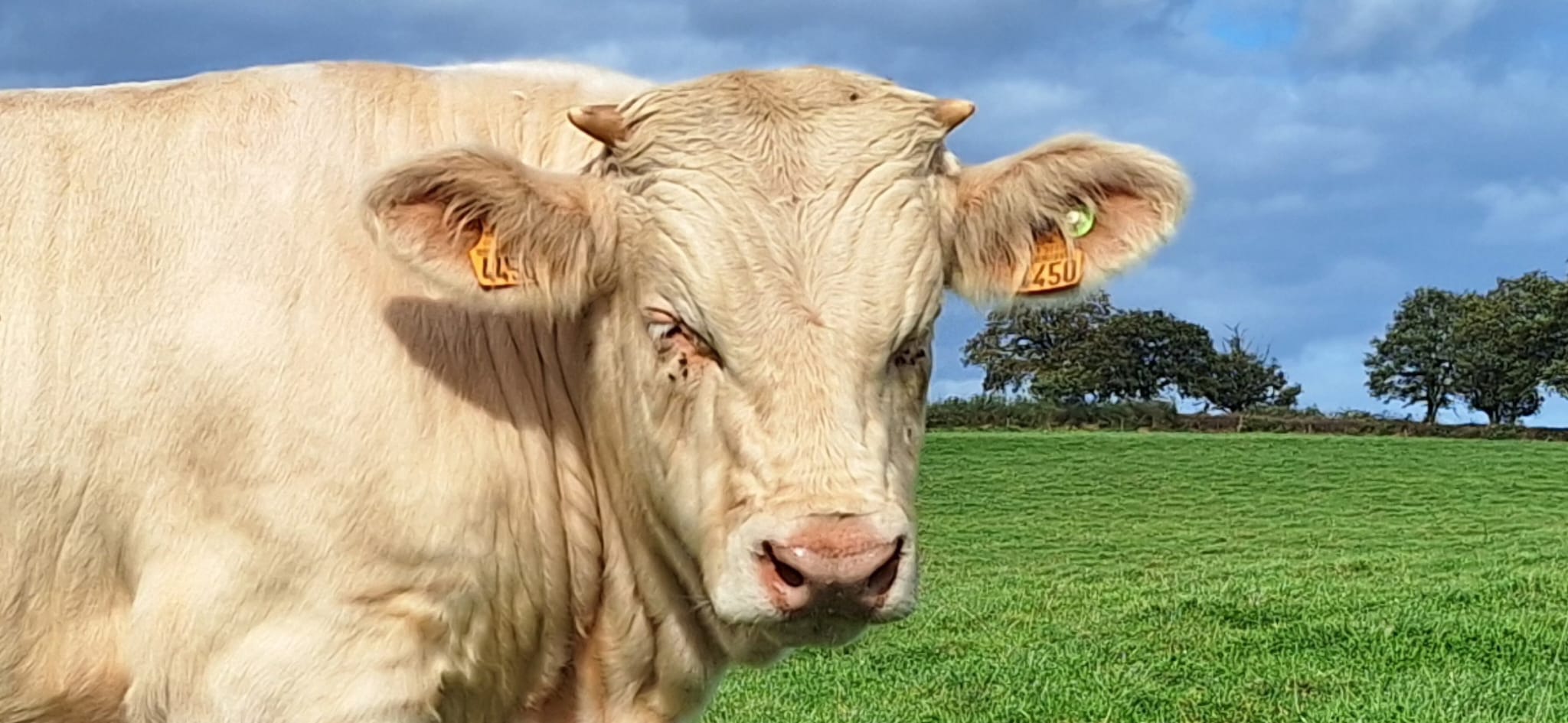 La surface de notre exploitation est de 210 hectares où nous cultivons de l'herbe pour nos animaux et environ 25 hectares de céréales (blé, orge, triticale, épeautre, avoine et méteil) pour la complémentation de nos animaux ainsi que la paille pour leur confort hivernal...